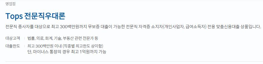 ■ 신한은행 Tops 전문직 우대론 대출한도
