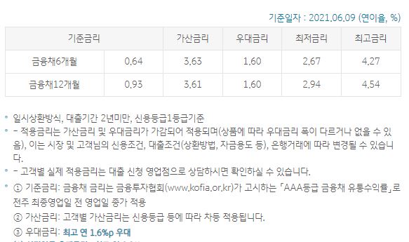 ② 기타 우대금리: 최고 연 0.7%(단, 일시상환은 최고 연 0.2%)