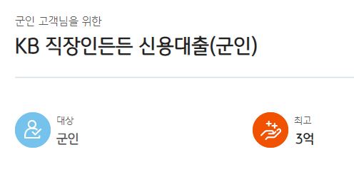 국민은행 군인 신용대출(장교 부사관 군무원) 한도 및 금리