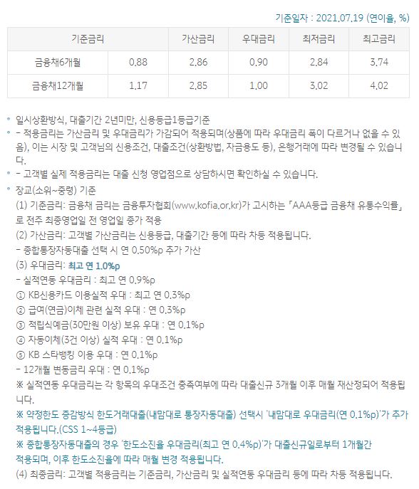 | 국민은행 KB청약(주택종합저축)담보대출 (0) | 2021.07.20 |
