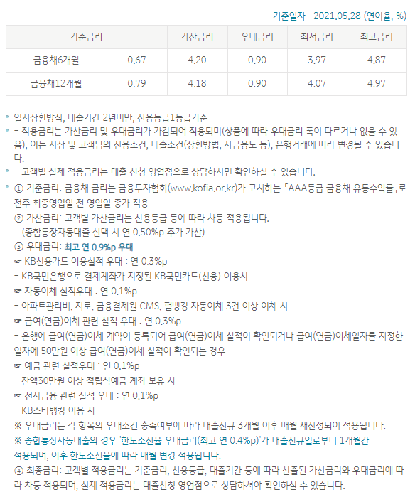 21.5.28일 기준으로 우대금리포함 이 정도의 금리가 적용되는데 실제 적용금리는 고객별 신용등급에 따라 달라질 수 있습니다.