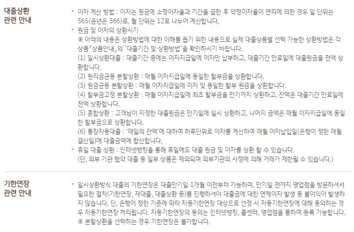 이 상품은 중도상환 수수료가 없기 때문에 여유자금이 생길때마나 자유롭게 납입을 하실 수 있으며, 금리인하요구권 신청이 가능합니다.