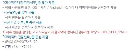 국민은행 매직카 대환대출 신청시 필요한 서류는 사진제출 또는 FAX, KB스마트대출 지원APP를 이용해서 제출하시면 됩니다.