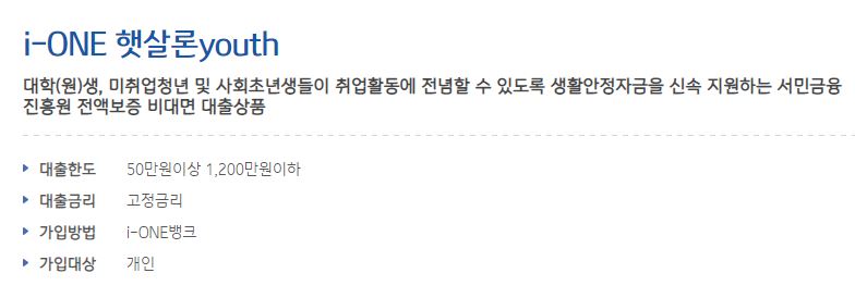 바로 햇살론 youth입니다. 기업은행에서도 취급하고 있으며, 신청자격이나 대출조건 등은 대동소이 한만큼 참고해서 살펴보시기 바랍니다.