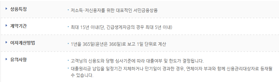 소득이 적거나 신용등급이 낮아서 1금융권에서 대출을 받기 힘든 분들을 대상으로 대출을 받으실 수 있도록 정부에서 내놓은 서민금융 상품인데요.