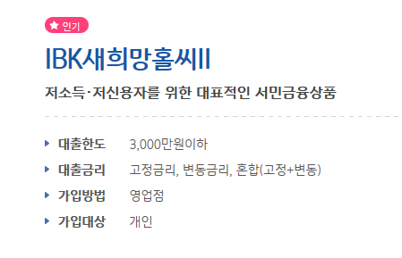 기업은행 새희망홀씨대출 신청자격 및 금리