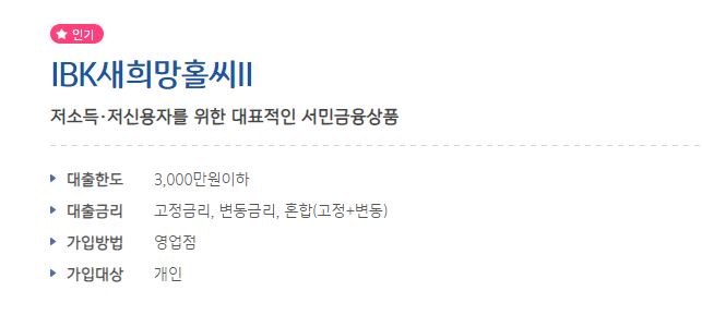 기업은행 새희망홀씨 신청조건 및 한도 금리
