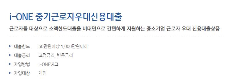 ■ 기업은행 i-one 중기근로자 우대신용대출 신청자격