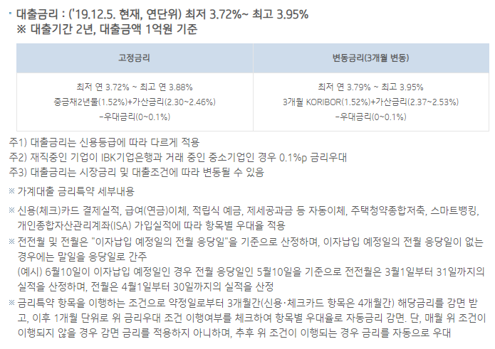 금리는 신용등급에 따라서 다르게 적용이 되며, 현재 재직중인 기업이 기업은행과 거래중인 중소기업인 경우엔 0.1%의 금리우대를 받으실 수 있습니다.