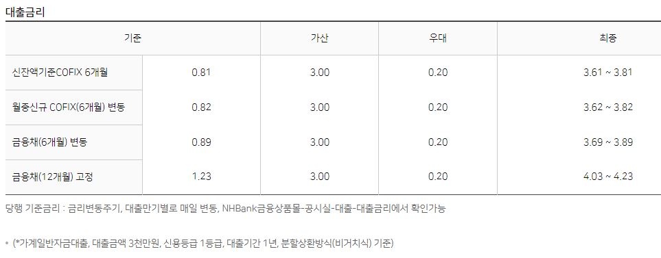 현 시점 기준으로 최저 3.61%~최대 4.23% 정도로 나오는데 이 부분은 참고만 하시고, 실제 적용금리는 진행과정에서 최종적으로 확인하실 수 있습니다.