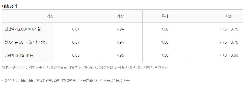 21.6.7 기준으로 최저 2.10%~최고 3.76%입니다. 다만 실제 적용금리는 개인의 신용등급이나 대출조건에 따라서 달라질 수 있습니다.