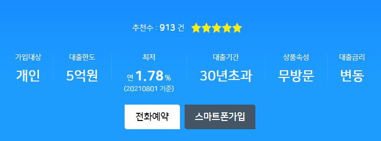 21.8.1 기준으로 최저 1.78%~최고 3.18%정도로 낮은금리로 이용하실 수 있습니다.