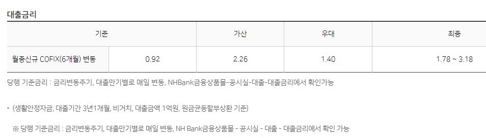 ■ 농협은행 NH모바일아파트대출2.0 금리