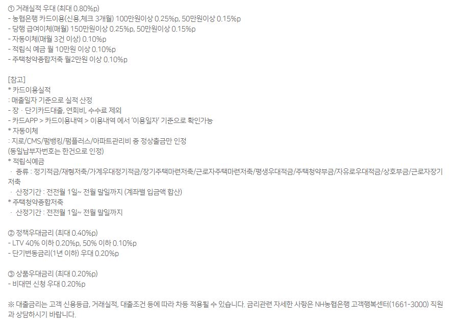 농협은행 모바일 아파트담보대출은 기준금리와 가산금리, 우대금리에 따라서 고객별 적용금리가 달라지게 되는데요.