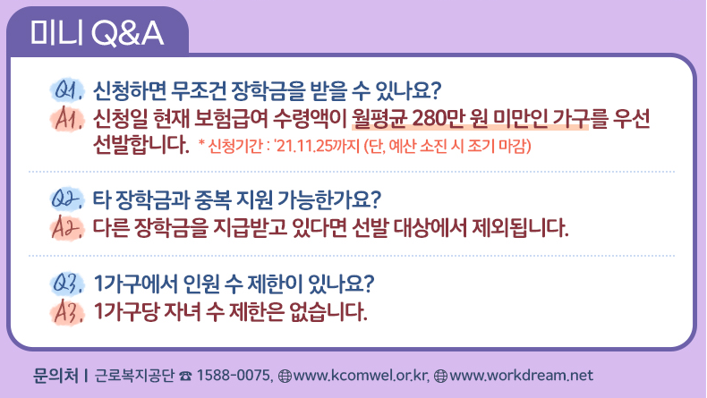 오늘 이 시간에는 산재 근로자 분들의 걱정을 조금이나마 덜어드릴 수 있도록 산재근로자 자녀장학사업에 대해서 알려드릴께요.
