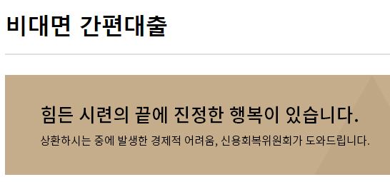 혹시라도 신용회복위원회의 채무조정을 받고 계시는 분들중에서 일시적인 어려움을 겪고 계신다면, 신용회복위원회의 비대면 간편대출 상품을 참고해 보시기 바랍니다.