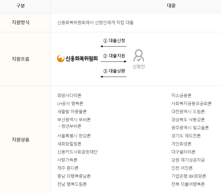 신용회복위원회에서 신청하신 분에게 직접 대출을 해드리는 방식입니다.