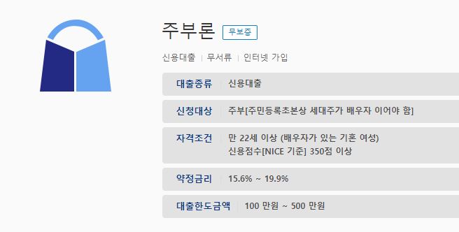 1금융권은 물론, 제도권의 2금융권에서도 이러한 주부님들을 위한 신용대출 상품을 취급하고 있는 만큼, 참고해 보시기 바랍니다.