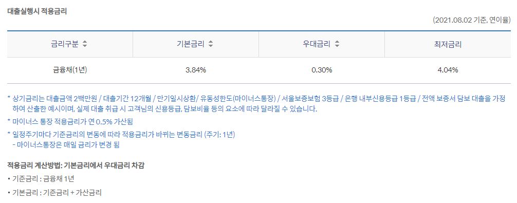 실제 고객의 적용금리는 기준금리와 가산금리, 우대금리 및 대출조건에 따라서 달라질 수 있습니다.