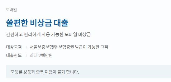 그래서 준비한 상품은 신한은행 쏠편한 비상금대출인데요.