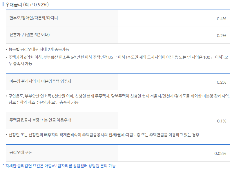 -주택금융공사 보증 또는 연금 이용우대 0.1%