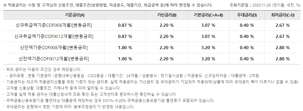 약정이율: 기준금리+가산금리-우대금리