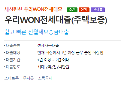 우리은행 우리WON전세대출 스마트폰 무서류 전세자금대출