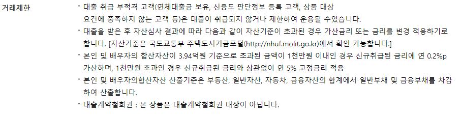 ③ 대출신청인과 배우자의 합산 총소득이 최근년도 또는 최근 1년간 6천만원 이하여야 합니다.