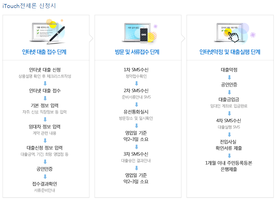 우리은행 itouch전세론은 인터넷에서 신청을 하셔야 하며, 그 이후 필요한 서류를 가까운 영업점에 제출하시면 됩니다.