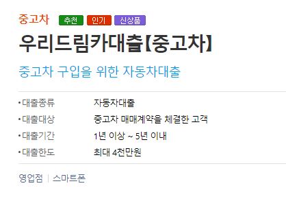 ■ 우리은행 중고차대출 금리