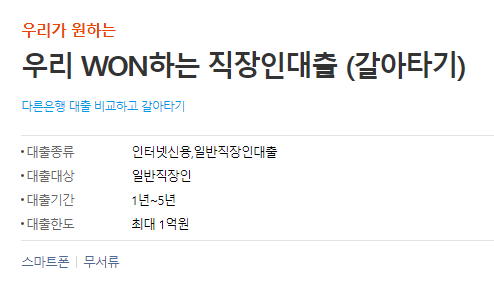 이러한 문제로 고민을 하고 계시는 직장인 분들이 계시다면 우리은행 직장인 대환대출에 대해서 한번 알아보시기 바랍니다.