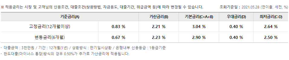 기준금리+가산금리-우대금리 포함