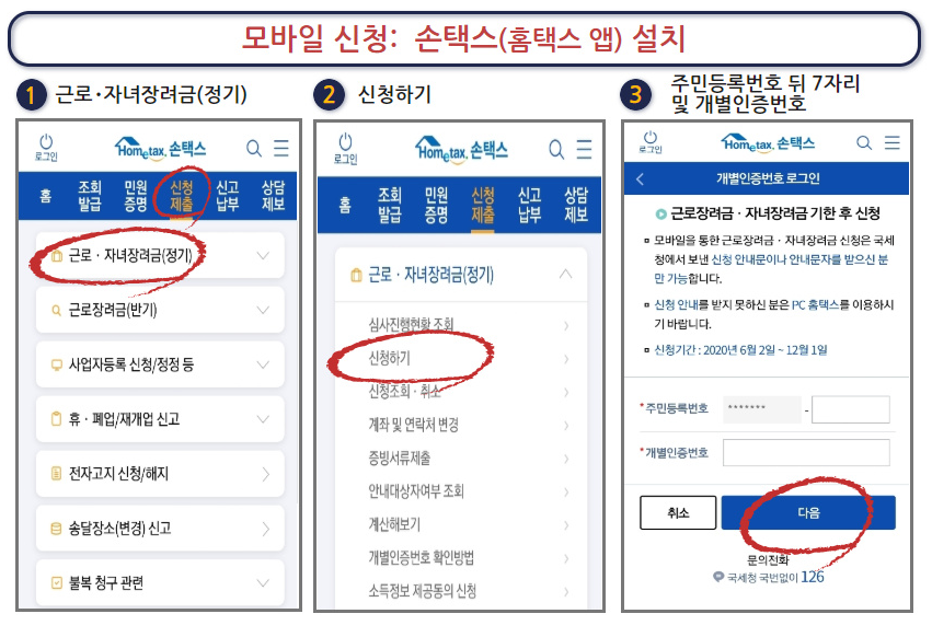 근로장려금이나 자녀장려금은 받을 수 있는 분들에게 미리 안내문이 발송되며, 안내문을 받지 못한 분들은 홈택시나 손택스 앱을 통해 본인이 안내 대상인지 아닌지를 확인하실 수 있습니다.