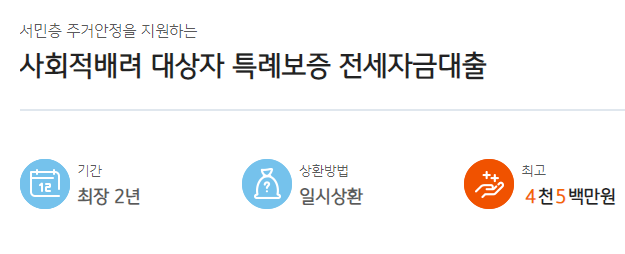 정부에서는 서민층의 주거안정을 위해서 사회적배려 대상자 특례보증 전세자금대출을 지원하고 있습니다.