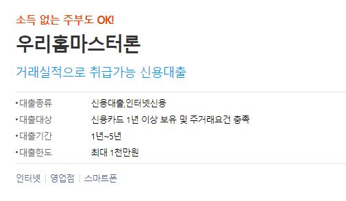 주부대출추천 우리은행 우리홈마스터론 무직자 주거래은행대출