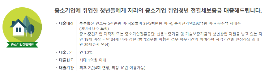 오늘은 중소기업에 취업하신 청년분들에게 저리의 전월세보증금 대출을 제공하는 중소기업취업청년 전월세보증금대출에 대해 알아볼께요.