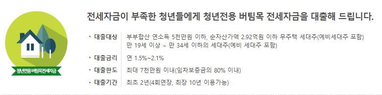 그래서 오늘은 전세자금이 부족한 청년분들에게 청년전용 버팀목 전세자금을 대출해드리는 상품에 대해 알려드리는 시간을 가져볼까 합니다.