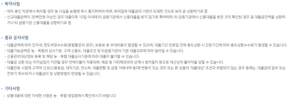 축협 농협 직장인 신용대출 자격 한도
