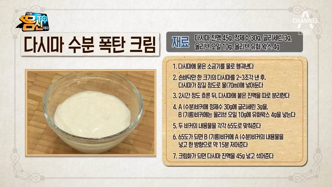 가장 대표적인 보습 크림에 재료는 다시마를 꼽을 수 있는데 다시마 진액의 알긴산 성분은 자기 몸의 200배나 되는 수분을 흡수해서 저장하는 성질을 가지고 있다고 하네요.