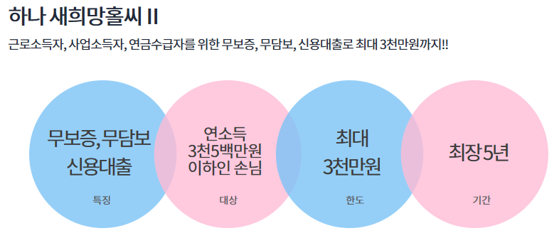 오늘 이 시간에는 하나은행 새희망홀씨 대출에 대한 간단한 정보를 알려드리도록 하겠습니다.