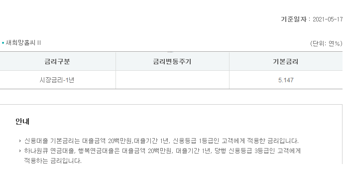 | 기업은행 새희망홀씨대출 신청자격 및 금리 (0) | 2021.05.17 |