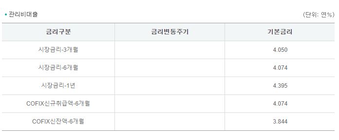 하나은행 관리비대출의 산정기준은 기준금리+가산금리-우대금리로 최종 결정이 되며, 기준금리는 신청시점의 시장고시금리에 따라 달라질 수 있습니다.