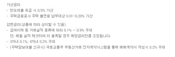 ① 급여이체 등 거래실적 종류에 따라서 0.1%~0.9%(단, 매월 실적을 체크해서 미 충족시 해당금리만큼 조정됩니다)