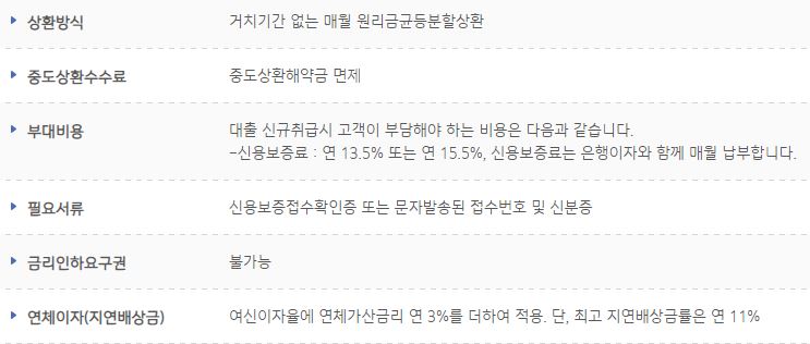 중도상환해약금이 없기 때문에 자유롭게 갚아나갈 수 있지만, 휴일에 대출금 상환은 불가하기 때문에 연체 하는 일이 없도록 이 부분을 미리 숙지해 두시기 바랍니다.