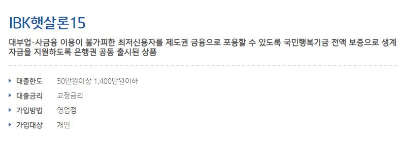 IBK 기업은행 햇살론15 신청자격 및 한도