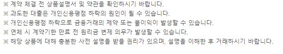 - 대출금액 1,500만원 ~ 1,900만원 : 12개월/24개월/36개월/48개월/60개월/72개월