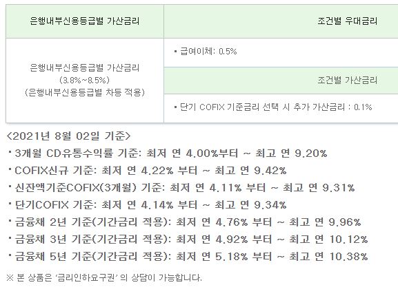 *은행내부신용등급별 가산금리 3.8%~8.5%(은행내부신용등급별로 차등적용)