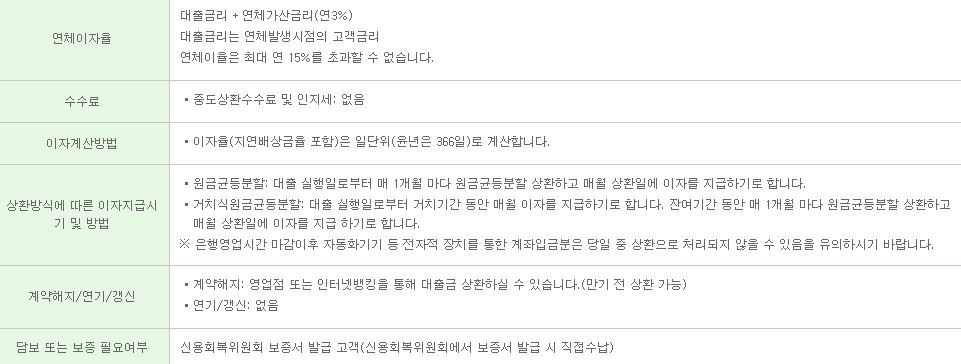 이 상품은 중도상환수수료 및 인지세가 없으며, 금리인하요구권 상담이 불가합니다.
